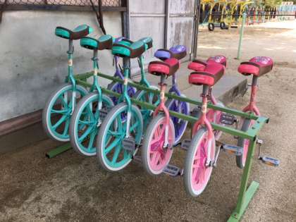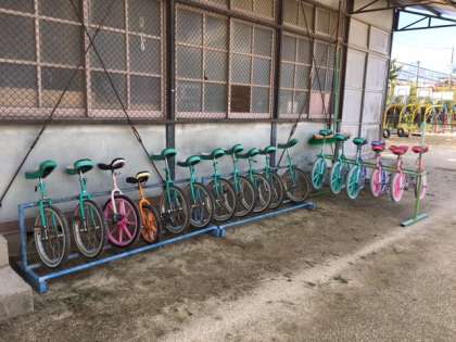 児童のみなさん,新しい一輪車も前からある一輪車も,大切に使ってくださいね!