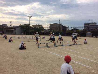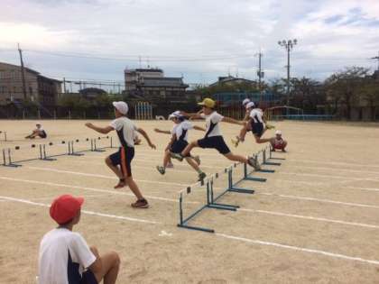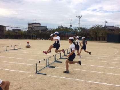 自分のインターバルを確かめながら,ハードル走の練習をしました。