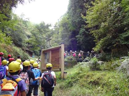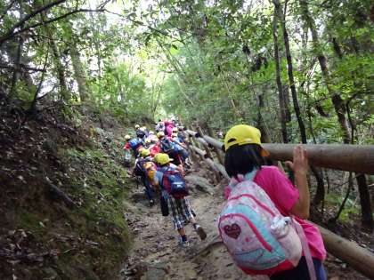 子どもたちは,友達に声をかけたり,すれ違う登山者の方に,