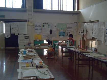 午前中に作品の搬入をして,午後に展示会を見に行きました。体育館は大変蒸し暑く汗が滴るほどでしたが,子どもたちは様々な自由研究や作品に目を向けて展示会を楽しんでいました。