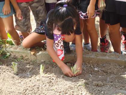 種から植えるやり方と苗を植えるやり方がありますが、今回は苗を植えました。細い苗を5本まとめて、土の中に押し込んでいくことが少し難しかったようです。