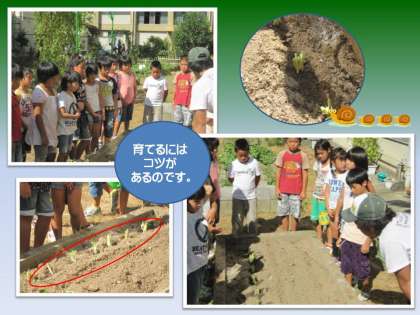 社会科の授業においては,地域の人々に参加してもらい,学習をいっしょになって進める場合があります。2か月先に3年生が学習する「農家のしごと」では,下鳥羽地域の農家の方の野菜づくりを教材にします。その際,農家の人々の工夫や努力を考えるための活動として,九条ねぎを育てる体験を取り入れます。実際に農家の方の指導を受けながら育てていきます。うまく育つでしょうか。