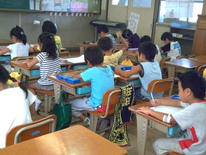 今日は,1年生にとって2回目の土曜学習でした。1時間目は,算数のプリントに取り組みました。これまでの足し算・引き算の計算問題,文章問題と夏休み明けの学習の復習をしまいした。せっかく休みに出てきたので無駄にしないようにと声かけをしました。 大変集中して,静かに取り組むことができたと思います。