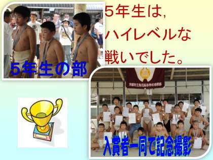 4年生の部優勝のS・Yさんは,体格差をものともせず,相手のふところにもぐり込み,自分の相撲を取りきりました。