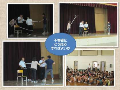 体育館であった説明では,教職員が(警察官が演じる)不審者に立ち向かう姿を見て,子どもたちにも緊張が少しは伝わったかもしれませんね。こんなことが本当に起こったら大変なことですが,危機管理はしっかりしておかねばならないと,みんなで話し合いました。