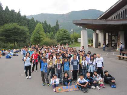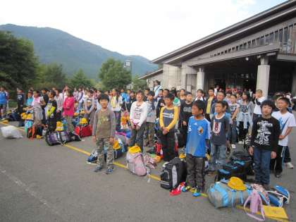 いよいよ山の家に着きました。校歌を歌い校旗をあげます。司会の子どもも,入所の言葉を述べる子どもも,大変立派な態度でしっかりと話すことができていました。素晴らしかったです。山の家の先生方からお話を聞き,さあ入所です。これからの5泊6日の活動が有意義なものとなりますように…。