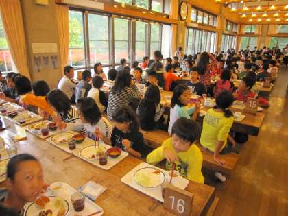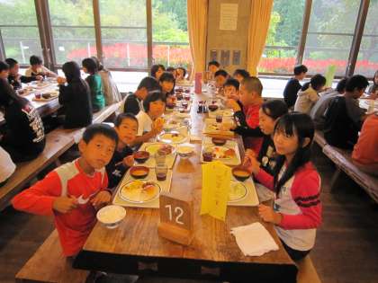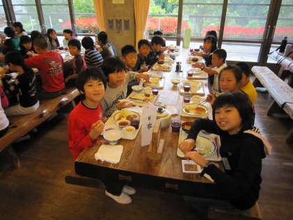 朝食もまたバイキング方式で食べます。食欲は旺盛です。しっかり食べてくれました。今日は朝の集いから元気いっぱいの子どもたち。集合時間前に,オリエンテーションホールにきちんと並ぶこともできました。他校の子どもたちへの学校紹介もとても良かったですよ。
