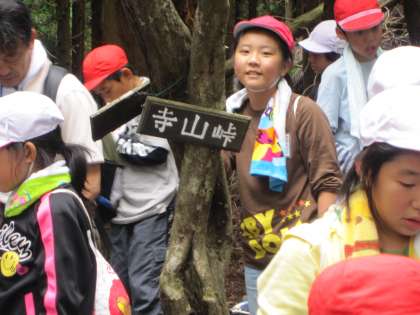『寺山峠』での休憩で,お茶を一飲みして,少し楽な気分になりました。幸いなことに今日はあまり気温が高くなく涼しかったので,最初の急な登りで汗を大量にかくということもありませんでした。子どもたちもあまり疲れてはいないようです。