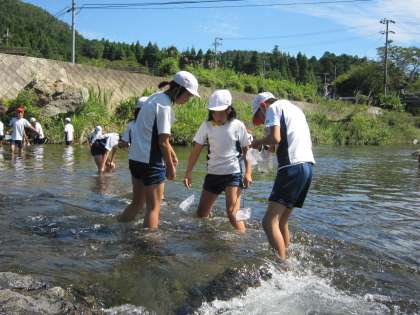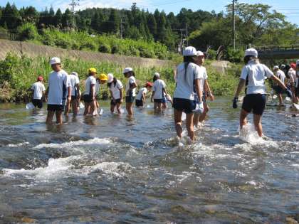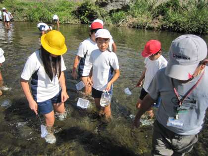 なかには,水の中にはまってしまう子どもも何人かいましたが,笑顔で観察を続けている様子を見ていると,自然を満喫しているのがよく分かります。みんな本当に楽しそうです。