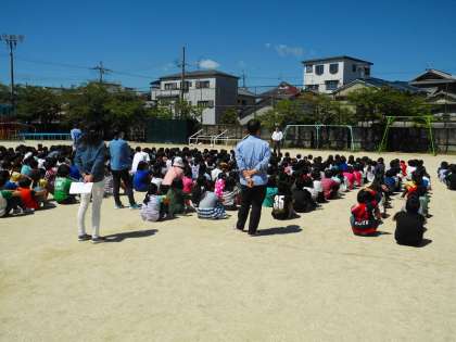 授業中,京都府南部に地震が起こり,その後,火災発生ということを想定した避難訓練を行いました。児童は「お・は・し・も・て」を意識し,真剣な表情で訓練に取り組んでいました。いつ起こるか分からない災害に備え,これからも訓練を重ねていきましょう。