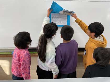 校内の掲示物を見て、その場面に合った「ふわふわ言葉(ホッとする言葉・元気が出る言葉)」を考えました。