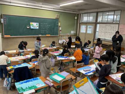 それぞれの机に置いた作品を見合って、互いのいいところを交流しあいました。