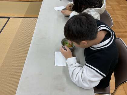 地域の方から作法を習って、自分でお茶をたてました。
