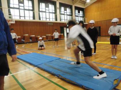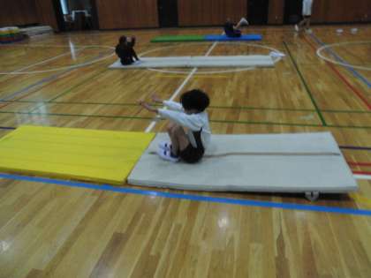 マット運動の練習中