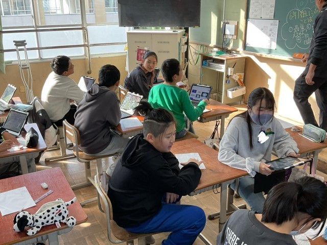 卒業に向けて、クラスの様子を表す言葉を話し合っています。