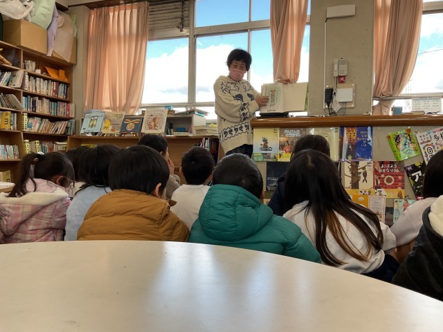 図書館司書の先生に、「かさこじぞう」を読んでもらいました。