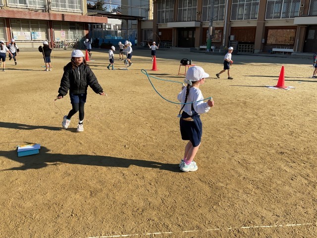 寒さが厳しい中でしたが、子どもたちは元気になわとびをしていました。