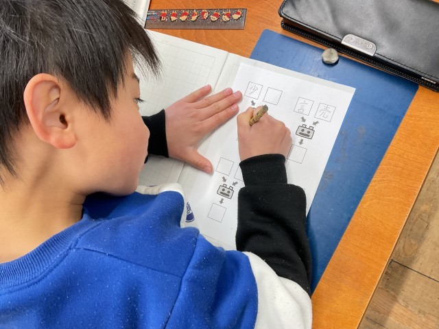 国語科の学習で、ならった漢字を組み合わせる問題作りをしました。