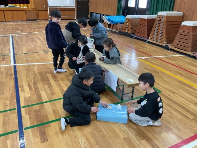 下鳥羽こども園の子どもたちを招いて、自分たちで作ったお正月のおもちゃで遊んでもらいます。