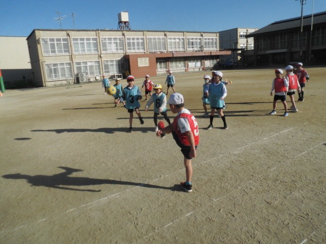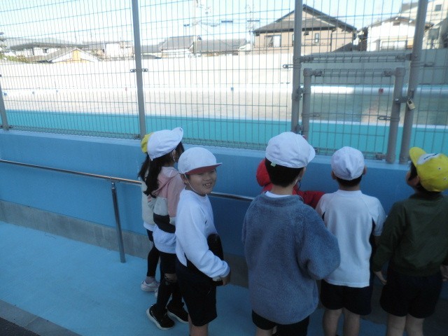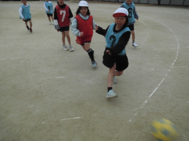 プールの水面が凍るほどの寒さの中、サッカーを頑張っています。