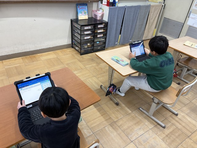 GIGA端末を使って、ミライシードに取り組んでいます。