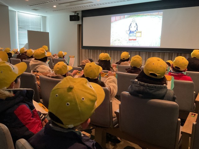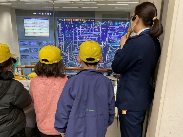 府警本部では、警察の仕事を動画で学んだり、安全な交通を支える施設を見学したりしました。