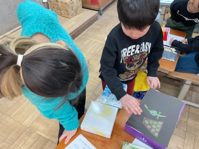 図画工作「たいせつボックス」では自分の宝物入れを作っています。