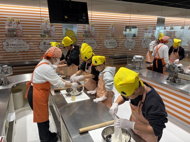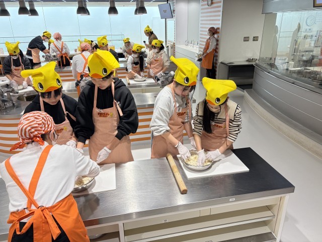 チキンラーメン作り体験をしています。