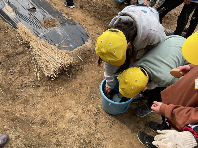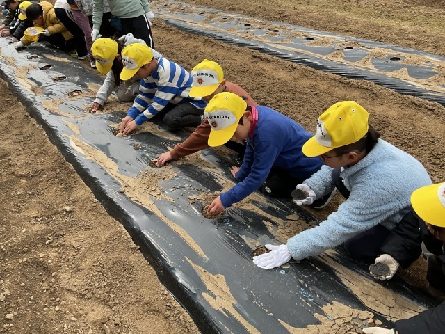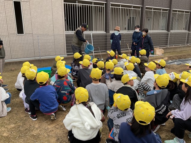 地域の農芸委員さんにじゃがいもの土づくりについて教えていただき、じゃがいもを植えました。