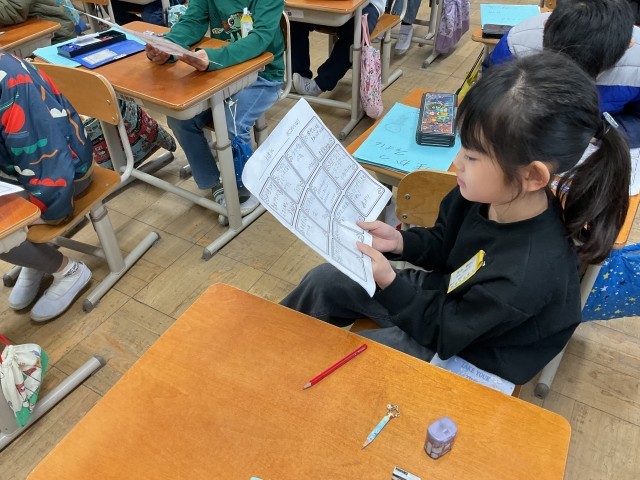 自分のよいところを見つけるヒントに、友達のよいところを見つけました。