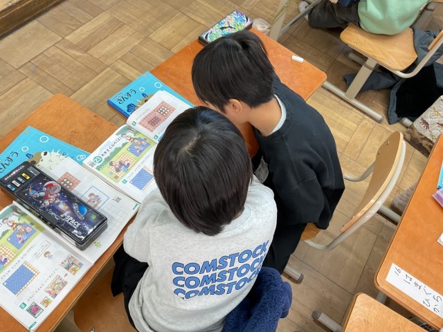 敷物の大きさやノートと折り紙の大きさを比べる学習をしました。