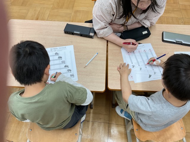 先ずは鉛筆の持ち方や線なぞりからスタートです。