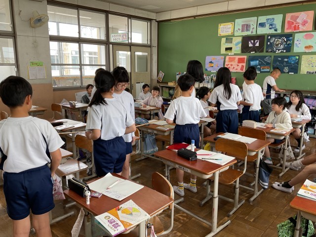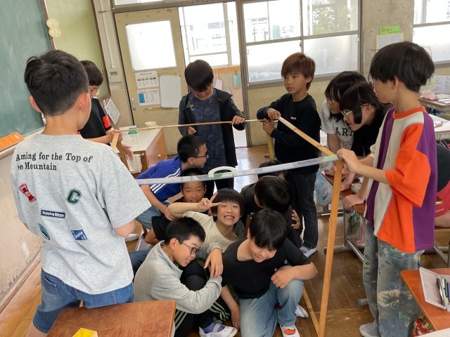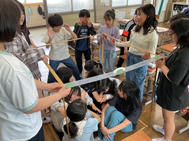 算数の学習で1平方メートルの大きさを作ったり、教室の容積を長さを測って計算したりしました。