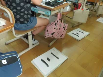 実際に墨汁を出して,横画の「一」「二」を書きました。