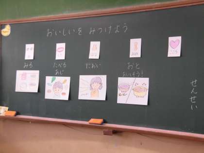 その後の給食では,さっそく五感を使って,見たり,耳をすませたりして,給食を楽しんでいる子どもたちの様子が見られました。