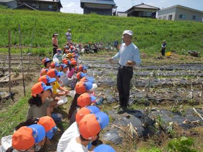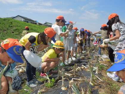 6月9日の金曜日は,「横大路の里」に玉ねぎの収穫に行きました。子どもたちは、大きいのを選んで3つ抜きました。自分の選んだ玉ねぎを,力いっぱい引き抜いて満足げな笑顔が見られました。お世話してくださった方々に,感謝の気持ちを持っていただきます。