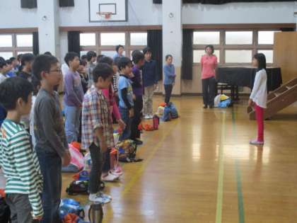 花背山の家の出発式の様子です。出発式は、体育館で行いました。