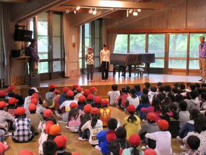 一緒に宿泊している4つの学校が集まり,各校の学校紹介をしました。
