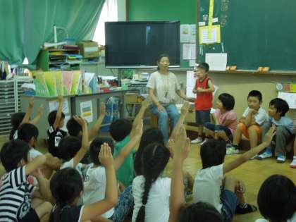 それぞれの名前と特技などの自己紹介や3年生が知っていることを発表しました。最後には,一緒にゲームをして楽しみました。