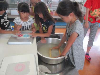 すくい取った紙は、そっと裏返しておぼんの上に置きました。