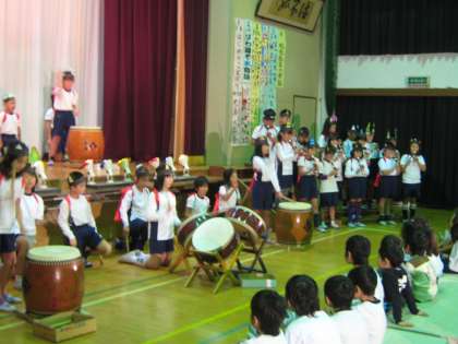 3年生はコンピュータの電子音に合わせて和太鼓とリコーダーのコラボの劇です。すごい迫力の演奏でした。よくがんばりましたね!