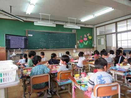 本日4時間目に栄養士による食育の学習がありました。苦手なものを食べれるこつを教えていただきました。その後の給食では,苦手なものにもチャレンジする姿が見られ,しっかりと学習できたことが分かりました。