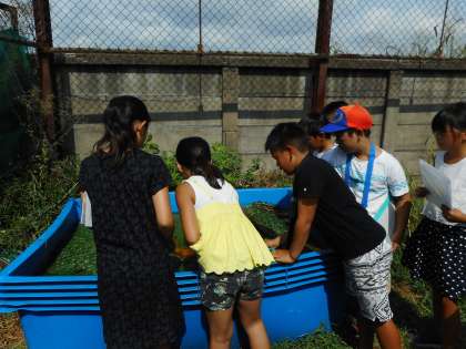 夏休み中に大きく生長したビオトープの植物の様子を観察しに行きました。