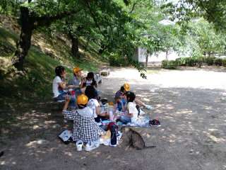 姫路城の見学が終わりお弁当を食べてま〜す。おいしそう〜