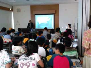 北淡町震災記念公園に到着しました。保存館で「語りべ」さんのお話を聞いています。