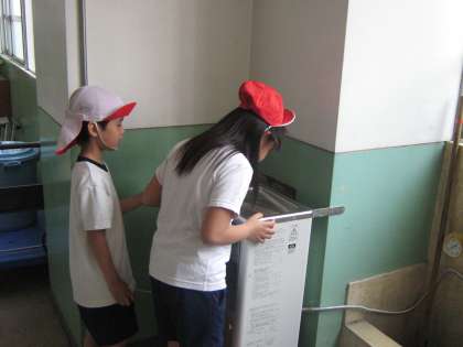 保護者の皆さんが集めてくださってベルマークで購入しました冷水機を今日から設置して使い始めました。さっそく体育の授業が終わって子どもたちが利用しています。これから暑くなりひっぱりだこになりそうです。どうもありがとうございました。明日の参観日でご覧いただければ嬉しいです。今年度は一輪車を購入したいと思っております。ご協力をお願いします。