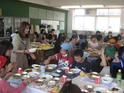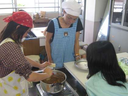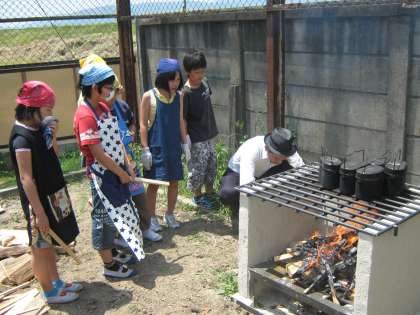 5年生のPTCが20日(金)の3・4校時に行われました。今回は5年生が27日(金)から花背山の家4泊5日の宿泊学習に行く前に,新しくできたかまどを使いました。教頭先生に薪のくべ方を習い飯盒でご飯を炊いて,家庭科室では保護者の方と一緒にハッシュドビーフを作り,いただきました。味は最高!みんなお腹いっぱい食べました。