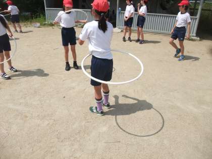 第2運動場でランニング,なわとび,フラフープをして体を動かして,楽しみました。