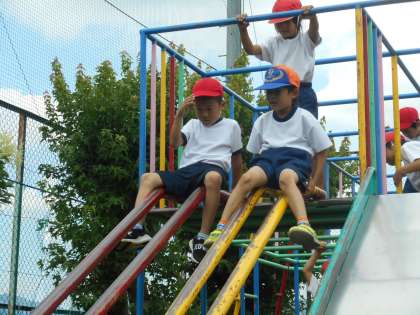 最初は怖かった総合遊具の滑り台も,今ではみんなが上手に滑る事ができるようになりました。