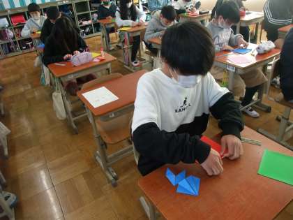 チョン先生に来ていただき,折り紙でチョゴリとチマチョゴリを作りました。